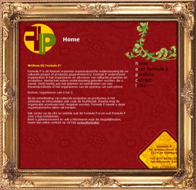 Een waar plaatje is het geworden, om in te lijsten zelfs… de website van Formule P. Ben je op zoek naar organisatorische ondersteuning bij een cultureel project of productie? Ga dan zeker even kijken. Ben je gewoon geïnteresseerd in vriendinnetje P, dan moet je de website zeker even gaan lezen. Wil je opnieuw zien wat SiteManager allemaal kan, ook dan moet je zeker even www.formule-p.nl gaan checken…